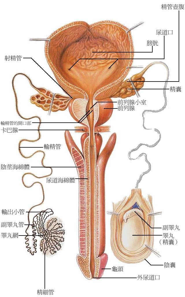 是男性生殖腺,為一橢圓形腺體,左右各一,位於陰囊之中。