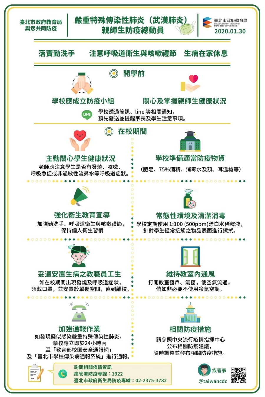 弘道國中因應「新型冠狀病毒肺炎」疫情防治措施